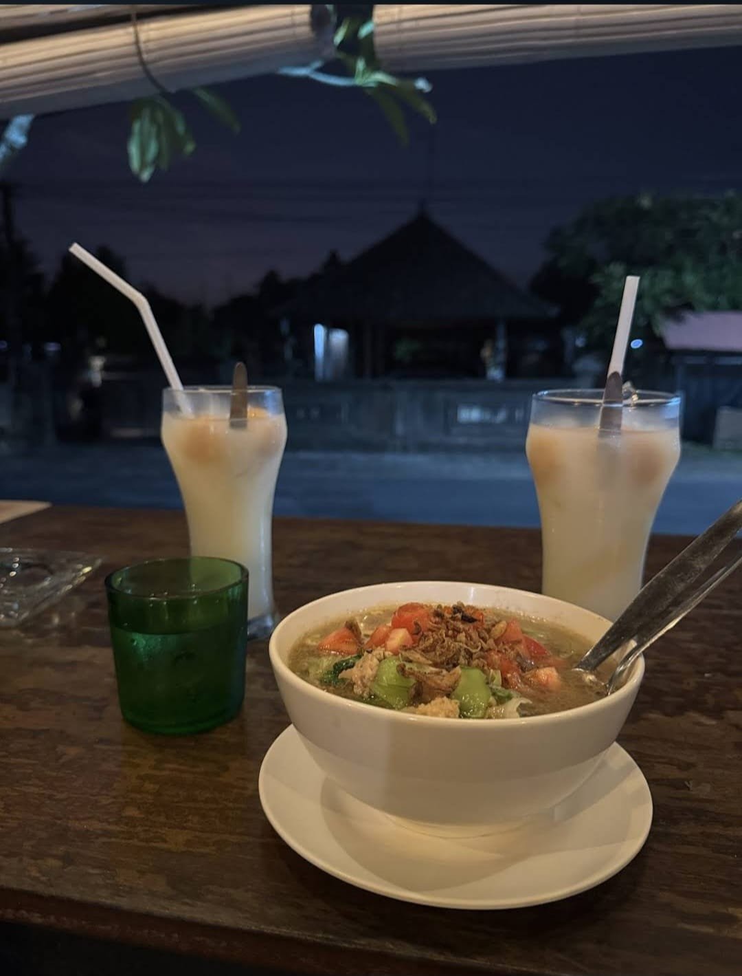 It combines a more modern café-style setup with the relaxed atmosphere of a traditional warung, making it a comfortable spot for both quick meals and longer stops.