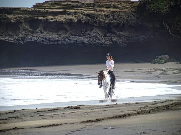 The beach rides offered by Salty Cowboy are among the most popular experiences at the stables. Riding along the soft, black volcanic sand of Bali’s northern beaches, you’ll be treated to stunning views of the Indian Ocean, with waves gently crashing against the shore as you ride. The peaceful ambiance and unspoiled nature of the area make it a truly relaxing and rejuvenating experience.
